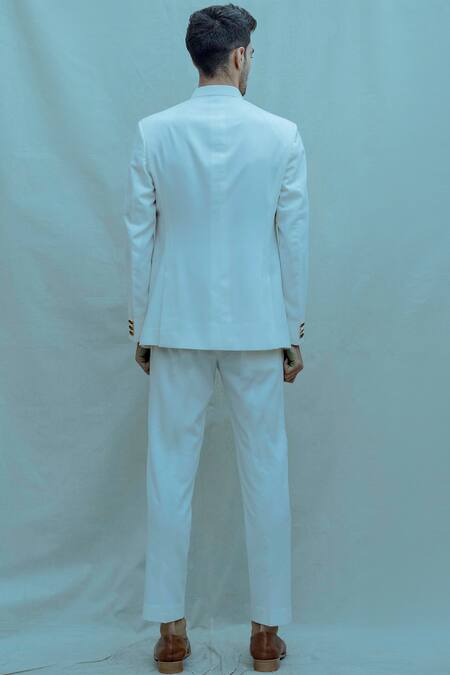Buy_Bohame_White Poplin, Suiting Bandhgala Pant Set_at_Aza_Fashions