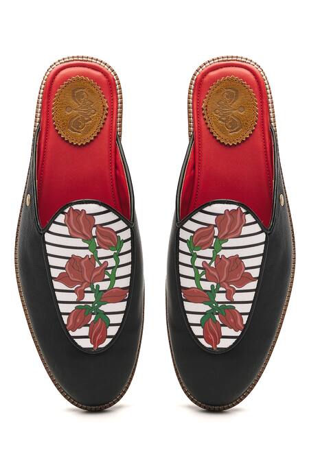 Hand-painted bloom florets on the upper, Genuine leather composition, Contrast red inner lining
