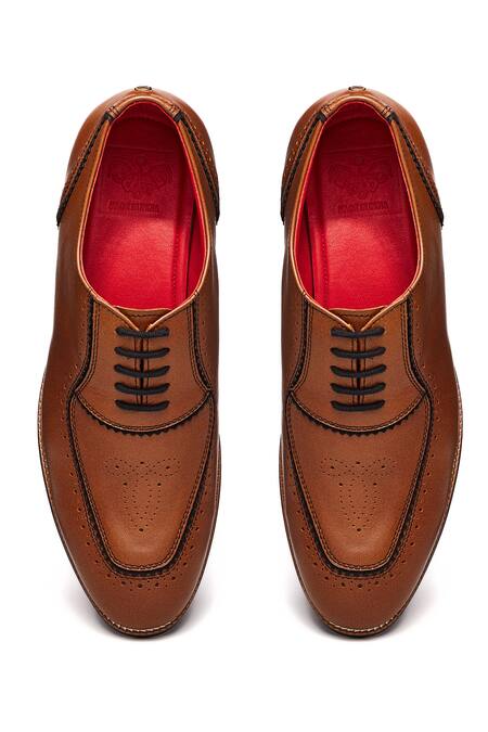 Crimson leather trims detailing, Red toned genuine leather cushioned interiors, Brogue work on the upper
