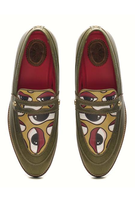 Green Abstract Nazar Placement Pattern Loafers