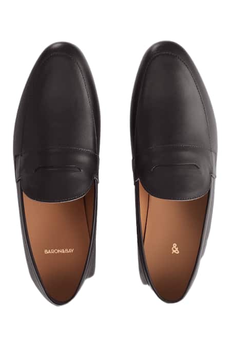 Buy_Baron & Bay_Black Plain Napa Leather Tapered Front Shoes _Online_at_Aza_Fashions