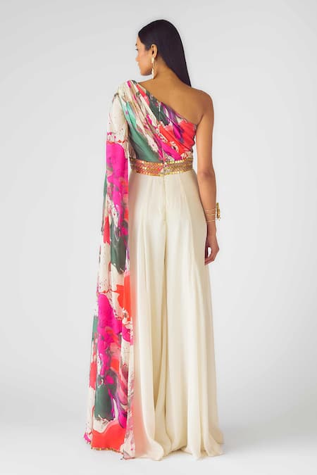 Basanti Kapde aur Koffee_Ivory Crepe Beads, Embroidery Asymmetric Embellished Jumpsuit _Online_at_Aza_Fashions