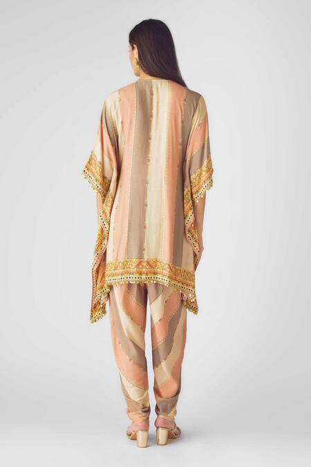 Peach Muslin Embroidery, Sequins, Embellished Asymmetric Kurta And Dhoti Pant