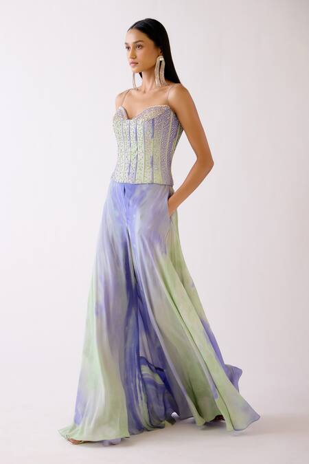 Purple Crepe Crystals, Stones, Beads Sweetheart The Drift Corset With Sharara