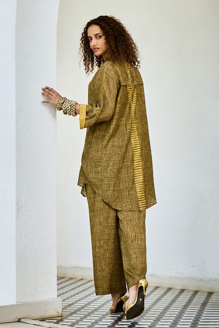 Buy_Basil Leaf_Yellow Silk, Linen Embroidery Printed Kurta And Pant Set _Online_at_Aza_Fashions