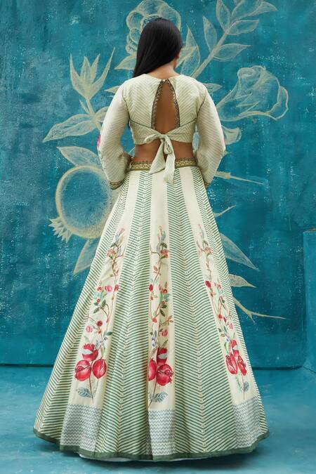 Beige Viscose, Chiffon, Organza Sequins, Pomegranate Veil Print Lehenga Set