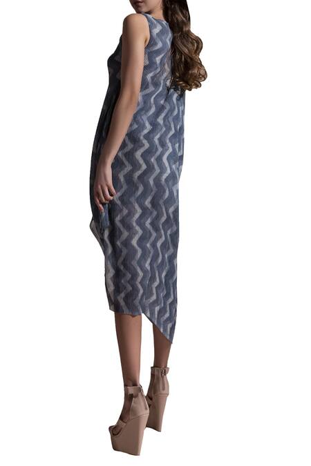 Buy_Abhishek Sharma_Blue Georgette Batik Print Dress_Online_at_Aza_Fashions