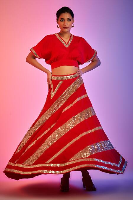 Buy_Gulabo By Abu Sandeep_Red Batwing Sleeve Crop Top