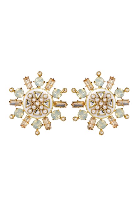 Gold Plated Pearls, Crystals, Rubaina Shell And Stud Earrings
