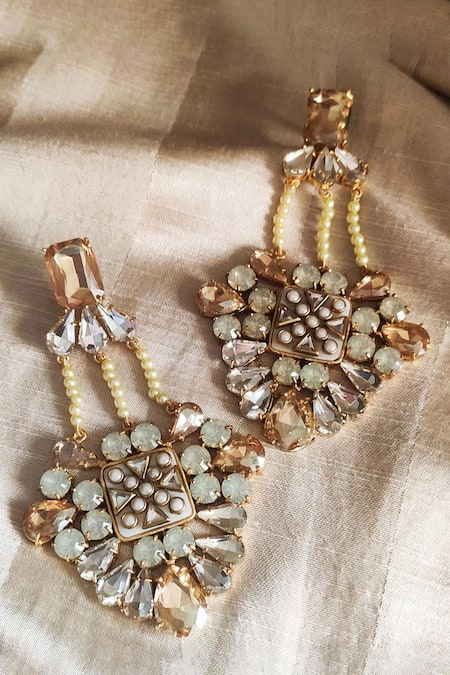 Gold Plated Pearls, Crystals, Stones Shivaaya Kundan And Cascade Danglers