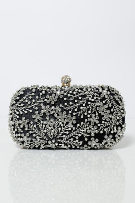 Black Pearls Embellished Satin Clutch
