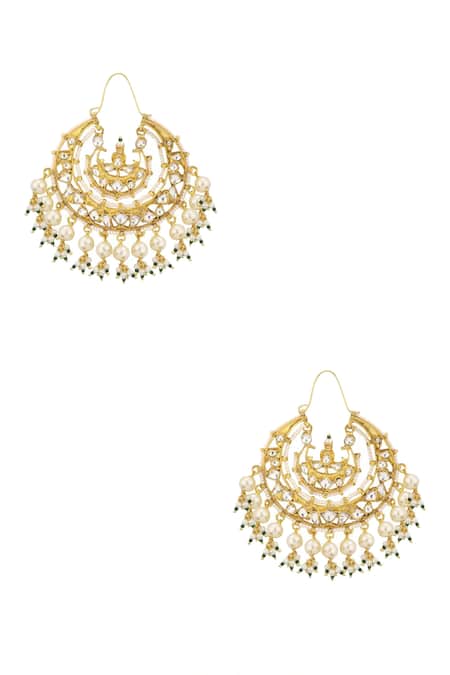 Gold chandbalis featuring encrusted stones with cluster bead drops