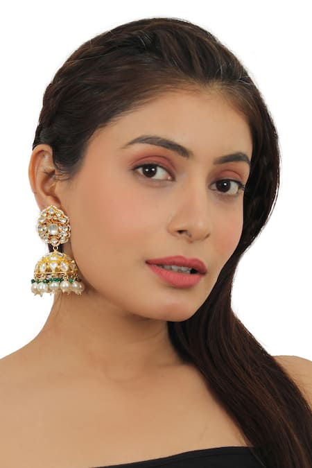 Riana Jewellery_Gold Plated Bead Drop Jhumkas _Online_at_Aza_Fashions