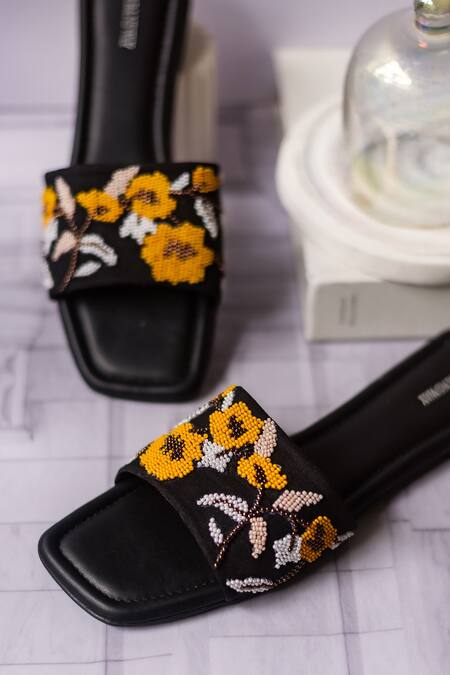 Buy_Urbansway_Black Embellished Bead Sliders_at_Aza_Fashions