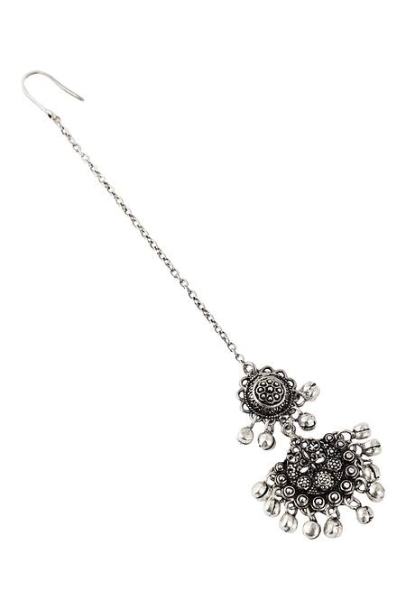 ZARIIN_Black Metal Bead Maangtikka_Online_at_Aza_Fashions