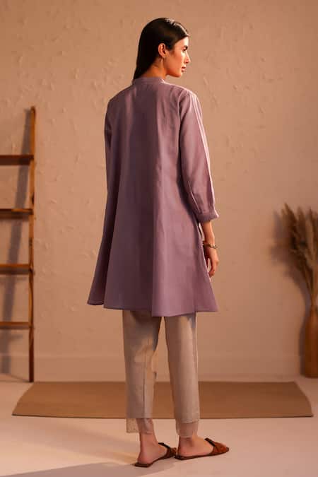 Purple Linen Hand Embroidery Floral Round Stardust Asymmetric Tunic