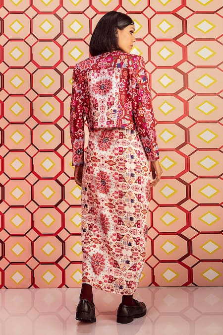 White Handloom Cotton, Silk Embroidery Collared Kashan Print Biker Jacket
