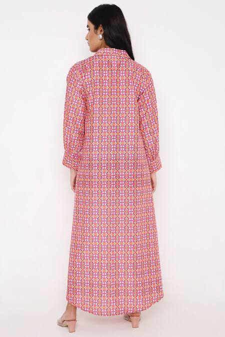 Pink Corduroy, Linen Collared Pluto Printed Shirt Dress