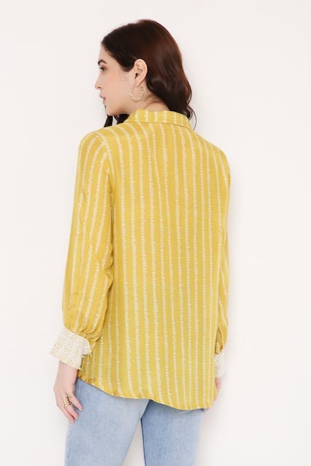 Yellow Muslin Collared Zein Bandhani Print Shirt