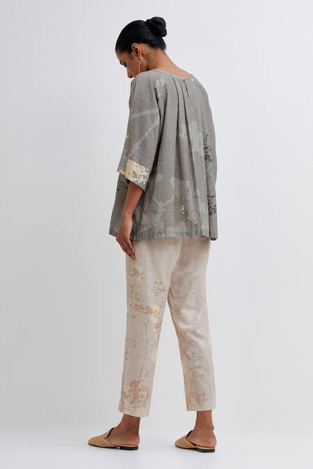 Placement hand embroidery of flowers on the top, Abstract pattern design on the pant