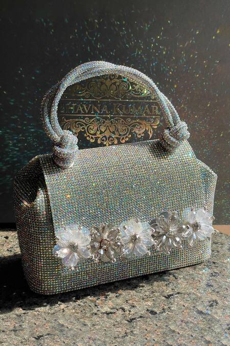 Knotted handles for easy carrying, Crystal and flower embellishments for added glamour