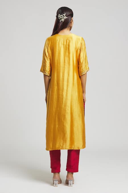 Yellow Organic Silk Embroidered Sequin Square Floral Kurta With Pant