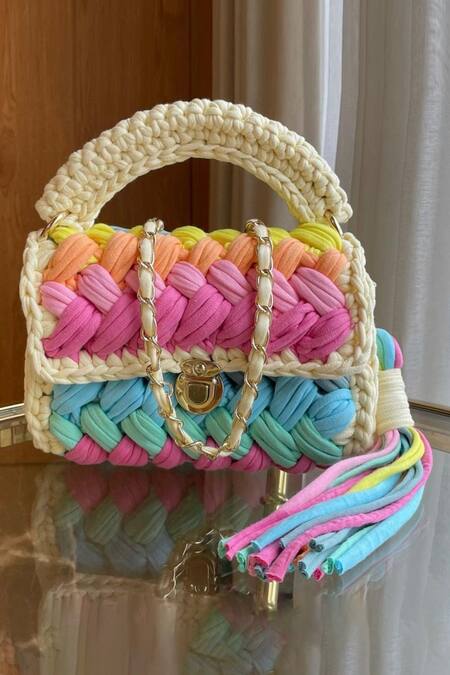 Multi color sling bag featuring braided textured detailing in cotton