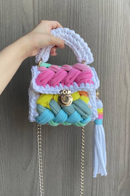 Multi Color Rainbow Cotton Yarn Sling Bag