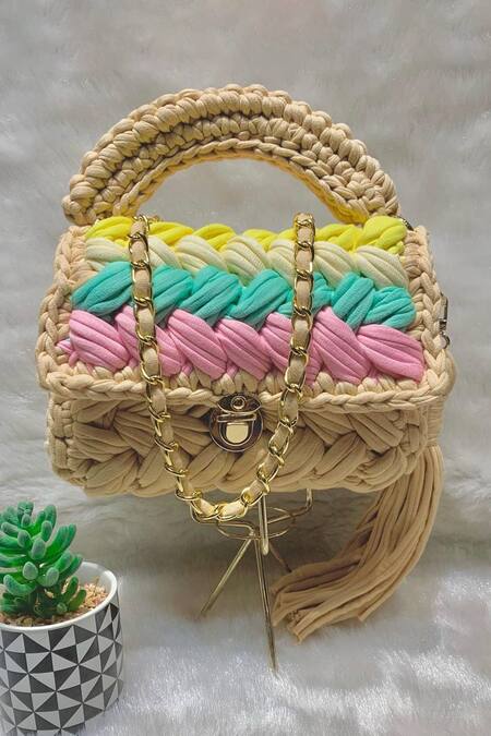Tassel detailing on the side, Braided textured design, Contrast flap with vibrant colors