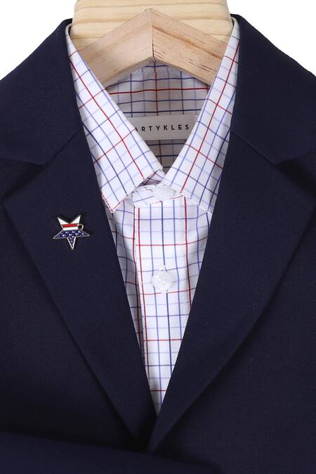 Buy_Partykles_White Terrycloth Blue Blazer Jacket And Checkered Shirt Set_at_Aza_Fashions