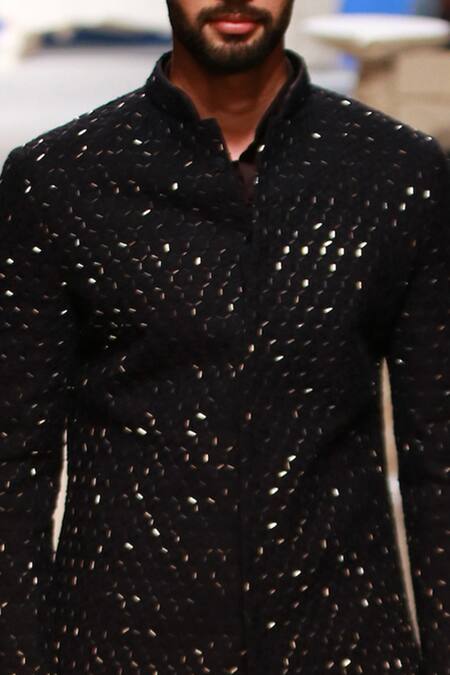 Fabric: Linen Satin, Care: Dry clean only, Fit: Relaxed, Note: Sherwani and kurta are for styling only.