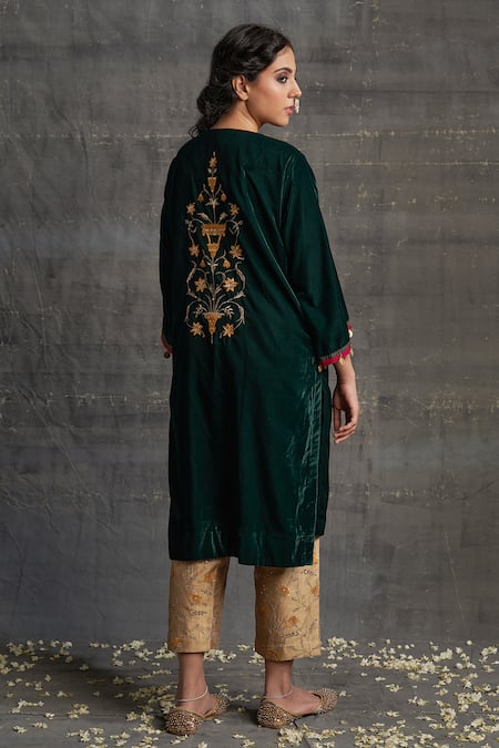 Green Velvet, Shantoon Zari, Embroidery, Sequins Lihaaz Kurta And Pant Set