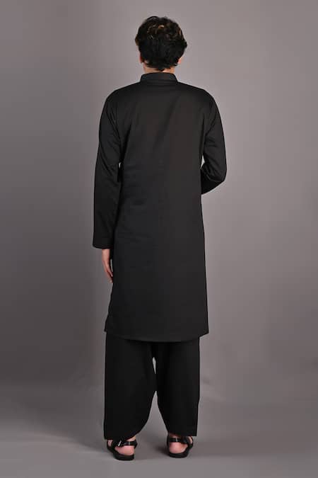 Buy_Bohame_Black Kurta And Pant Cotton Satin Adam Textured Bundi & Set_Online_at_Aza_Fashions