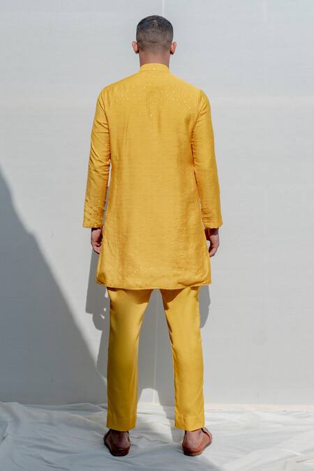 Yellow Cotton, Chanderi, Tencel Kurta And Pant Set
