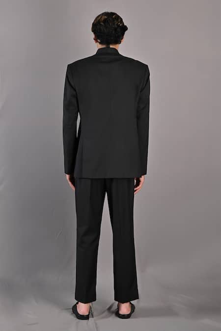 Buy_Bohame_Black Terry Wool Crisanto Bandhgala And Pant Set_Online_at_Aza_Fashions