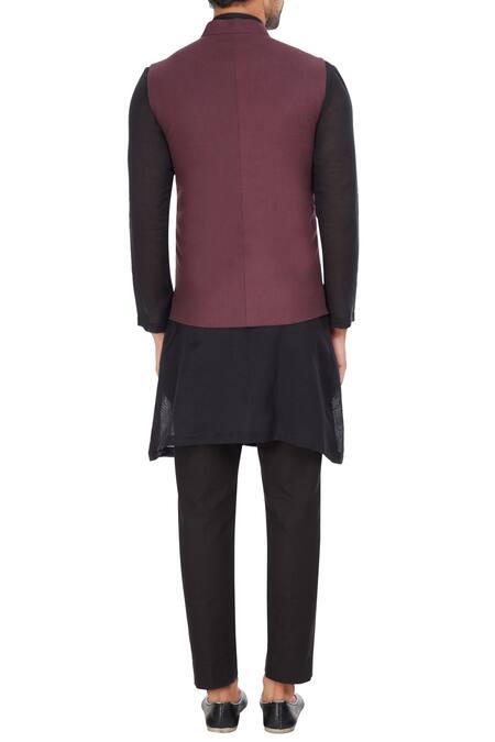 Add style and panache to your ethnic look of the day in this linen dark purple asymmetric style jacket. It is crafted from linen fabric which lends a fine and tailored vibe.