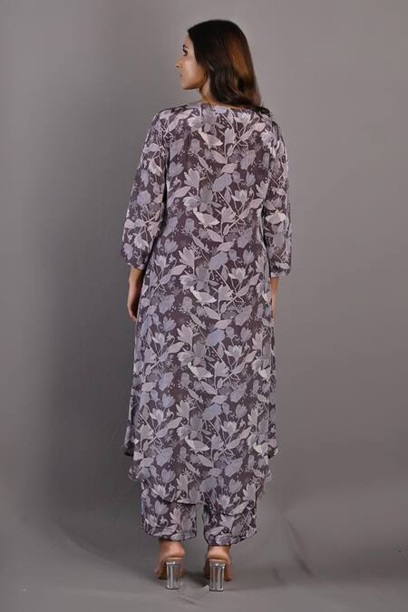 Purple Crepe Floral Round Print Tunic And Pant Set