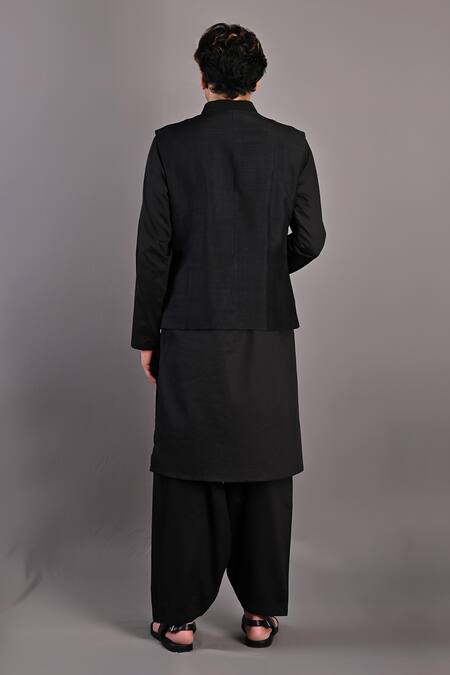 Buy_Bohame_Black Bundi Dupion Silk, Kurta And Salwar Cotton Haruka Embroidered & Set_Online_at_Aza_Fashions