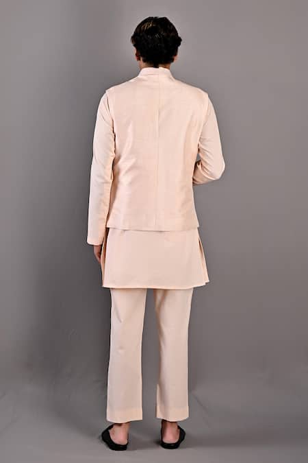 Buy_Bohame_Peach Bundi Dupion Silk, Kurta And Pant Cotton Laurence Embroidered & Set_Online_at_Aza_Fashions