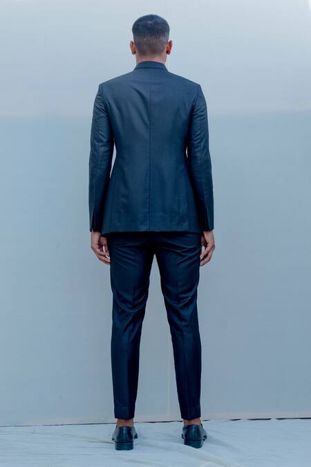 Black Suiting, Terry Wool Pleated Bandhgala Set