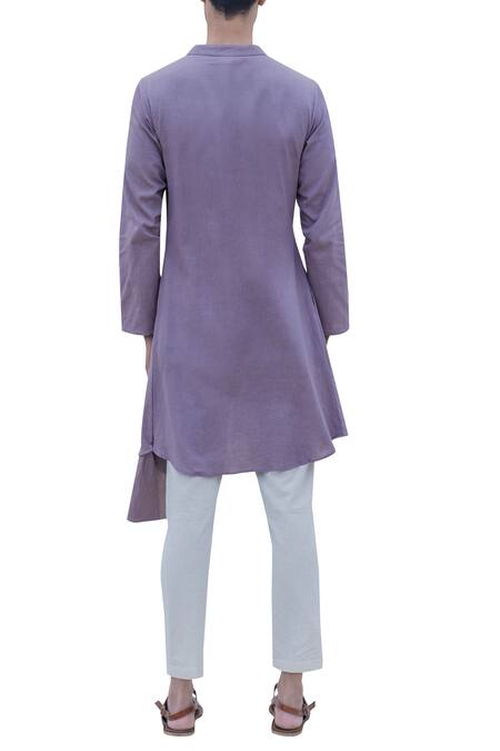 Purple Cotton Linen Pleated Side Kurta