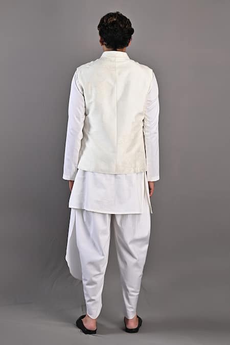 Buy_Bohame_Off White Bundi Dupion Silk, Kurta And Pant Cotton Tennyson Embroidered & Set_Online_at_Aza_Fashions