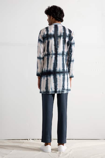 Cream kurta with all-over tie-dye pattern, round neckline, concealed placket, loop detail & full sleeves. Comes with grey pant.