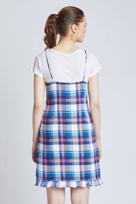 Buy_Bohobi_Blue Tweed Printed Checkered Sweetheart Neck Dress_Online_at_Aza_Fashions