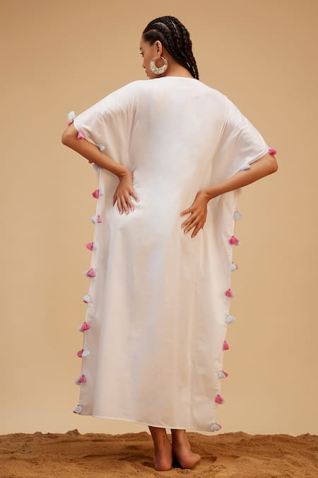 White kaftan featuring batwing sleeves and V neckline