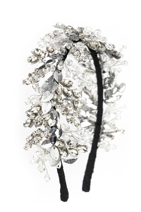 Silver Beads, Crystals, Sequins Darter Floral Embellished Hairband
