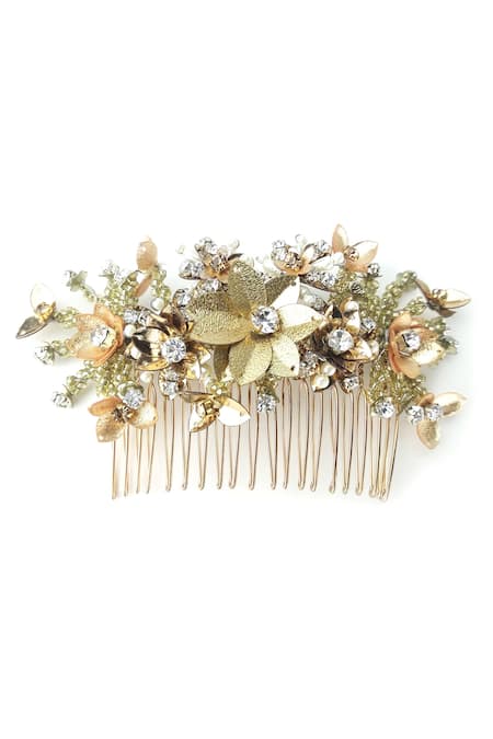 Gold Crystals, Beads, Sequins Eyerly Embellished Hair Comb