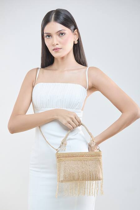 Gold Cut Work Cutdana Tassel And Crystal Embellished Bucket Bag