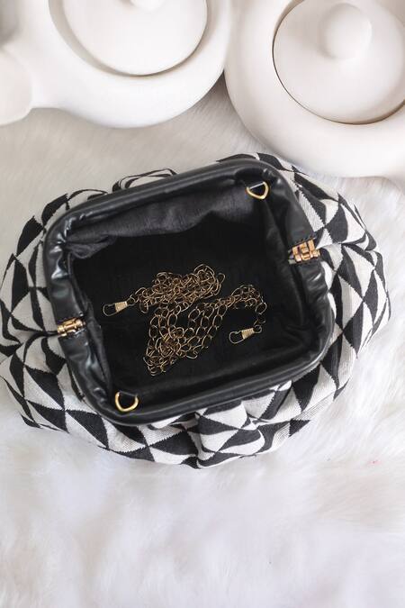 Buy_Boxwish By Bhumika_Black Abstract Jacquard Soft Pouch Frame Clutch_at_Aza_Fashions
