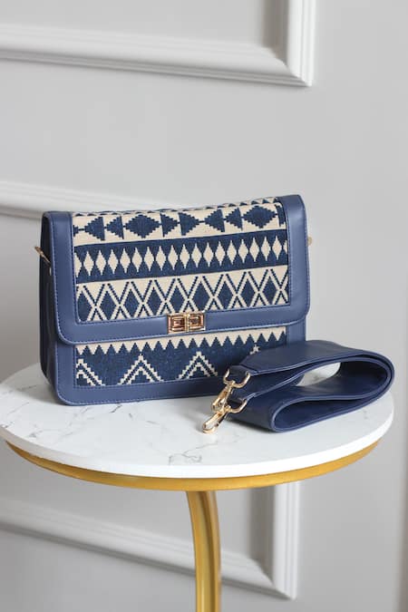 Blue Jacquard Abstract Pattern Sling Bag